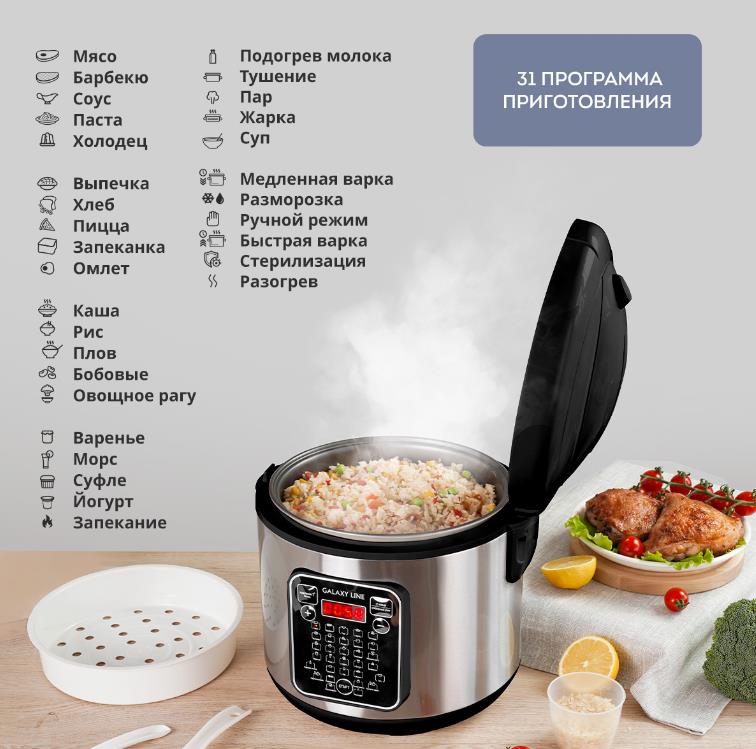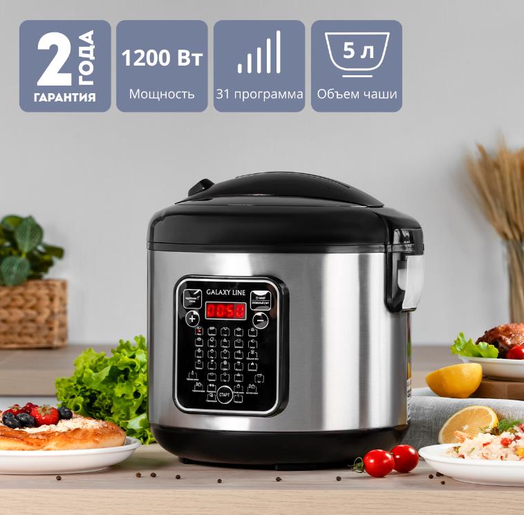 Мультиварка GALAXY LINE GL 2646 (1200 Вт/5 л /черный, серебристый) - Интернет-магазин Позитив: бытовая техника, электроника, товары для дома и др.
