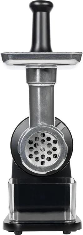Электрическая мясорубка электрическая с насадками HIBERG MG 990 B – надежный, стильный и многофункциональный помощник на вашей кухне! Черная модель гармонично впишется в любой современный дизайн кухни. Модель способна всего за минуту перемолоть 2 килограмма мяса, благодаря максимальной мощности 2000 Вт и внутреннему острому ножу из нержавеющей стали. Функция реверса запускает обратное вращение шнека, что помогает без труда измельчить даже большие и жилистые куски мяса. Мясорубка обладает мощным металлическим корпусом и алюминиевым загрузочным лотком с удобным толкателем. В комплекте также идут вместительный пластиковый контейнер, 3 решетки и 3 насадки, с помощью которых можно сделать любой фарш, приготовить колбаски, кеббе и даже приготовить домашний томатный сок. Устройство отличается комфортным уровнем шума до 75 дБ. Прорезиненные ножки не дают скользить по поверхности стола во время работы.