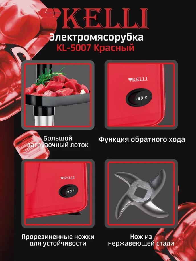 Мясорубка Kelli KL-5007 (2400 Вт /3 кг/мин/красный) - Интернет-магазин Позитив: бытовая техника, электроника, товары для дома и др.