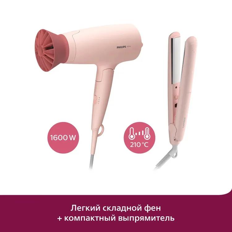 Набор для укладки волос Philips BHP398/00, компактный + выпрямитель (1600 Вт /розовый) - Интернет-магазин Позитив: бытовая техника, электроника, товары для дома и др.