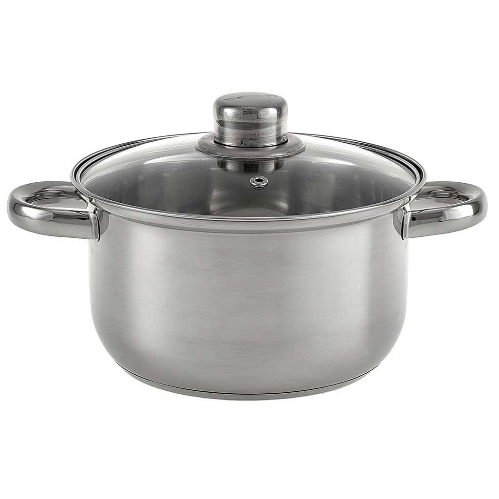 В наборе 8 предметов: ковш с крышкой 16×9,5см; 1,9 л кастрюля с крышкой 18×10,5см; 2,6л кастрюля с крышкой 20×11,5см; 3,5л кастрюля с крышкой 22×11,5см; 4,2л Толщина стали 0,3 мм