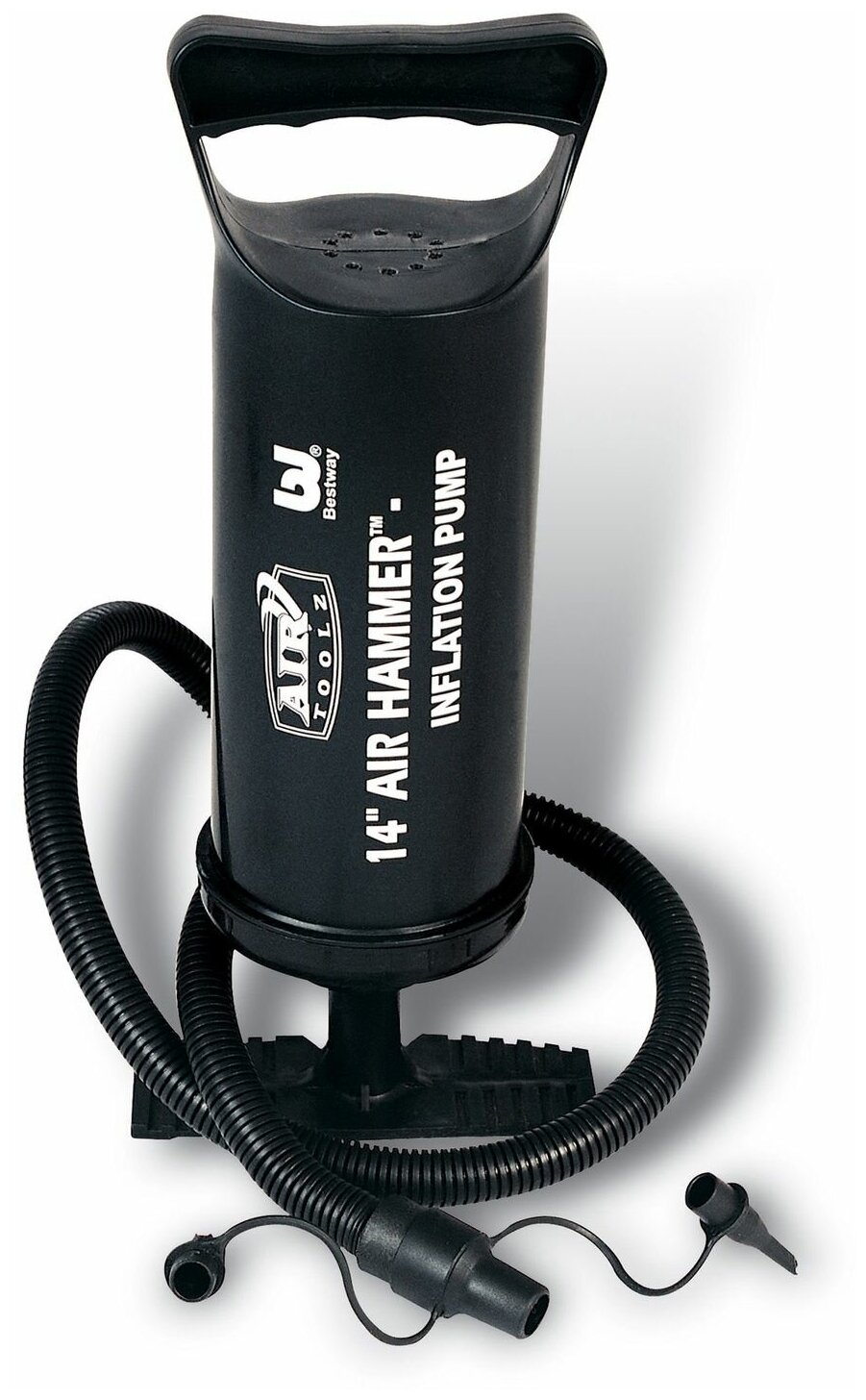 Ручной насос Bestway для накачивания надувных изделий. Обладает системой двойного действия: накачивает надувные изделия как при прямом, так и обратном ходе поршня. В комплекте с насосом идут гибкий шланг и 3 насадки для практически всех видов надувных изделий. Насос имеет удобный упор для ног. Подходит ко всем надувным изделиям Bestway и Intex.