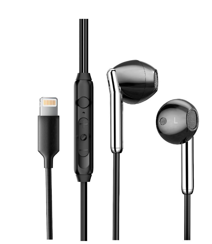 Наушники Aksberry Y3, внутриканальные, Lightning, микрофон на проводе черный