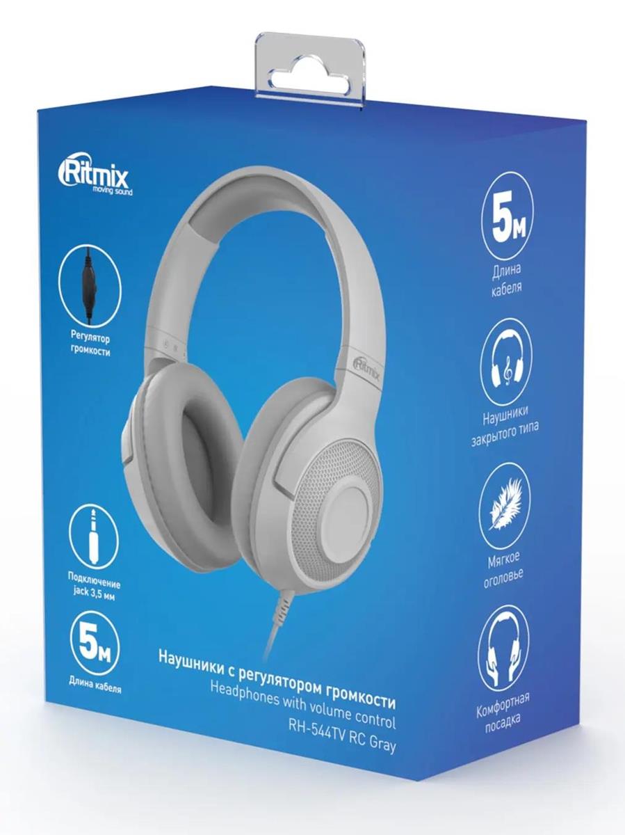 Наушники Ritmix RH-544TV RC, полноразмерные серый