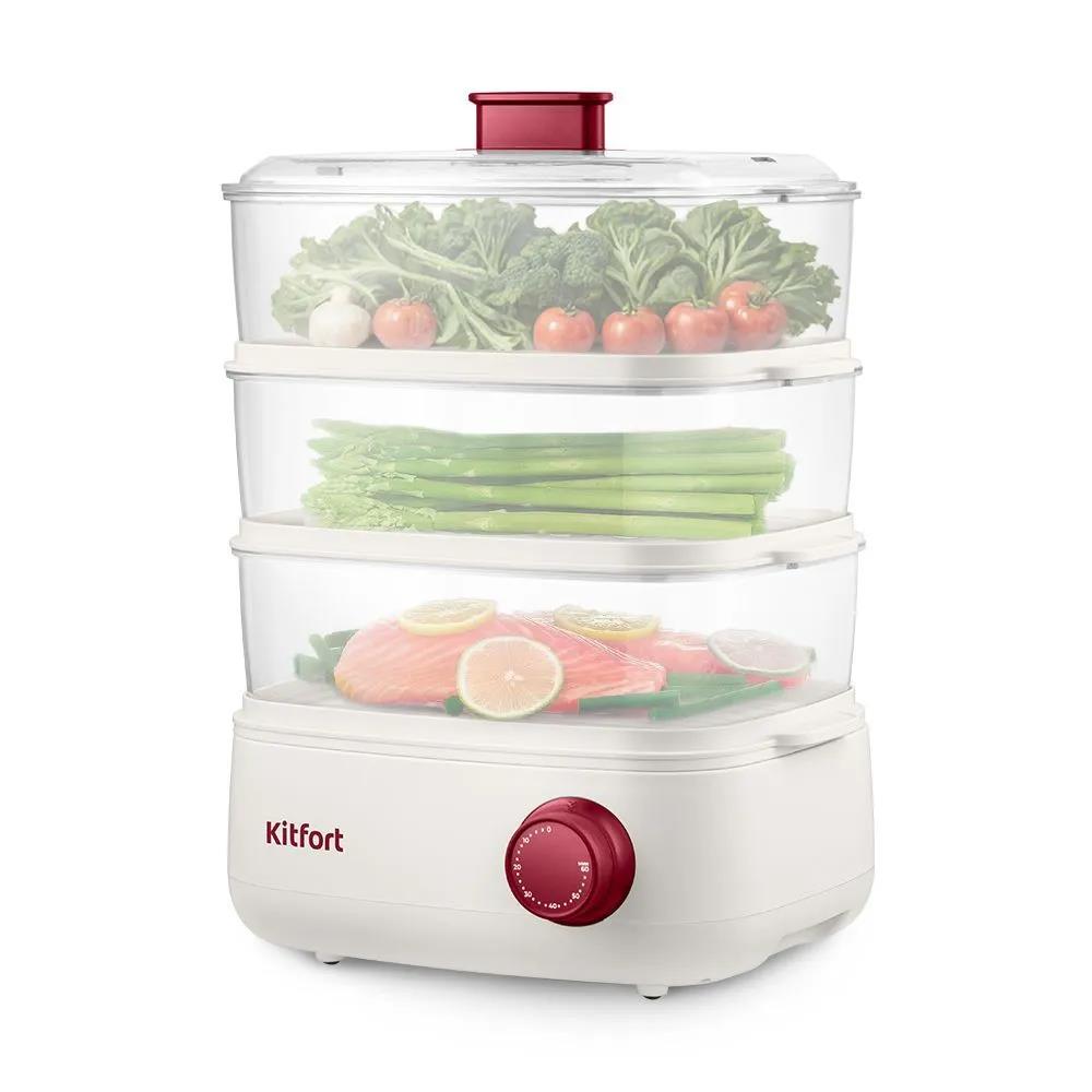 Пароварка Kitfort КТ-6830 3ярус. 800Вт (белый, красный) - Интернет-магазин Позитив: бытовая техника, электроника, товары для дома и др.