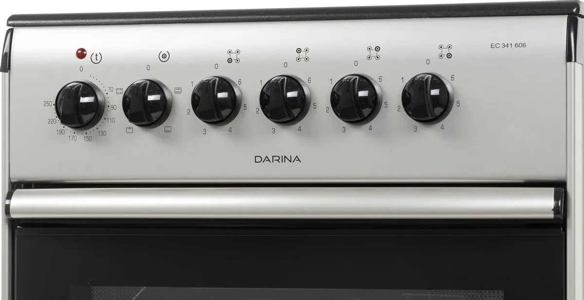 Серебристая электрическая плита в классическом дизайне гармонично впишется в Ваш кухонный интерьер. Она проста и удобна в эксплуатации. Материал поверхности стола – стеклокерамика, такая поверхность удобна в эксплуатации, легко моется, имеет хорошую прочность. Внизу плиты установлен удобный вместительный хозяйственный отсек для хранения кухонных принадлежностей.