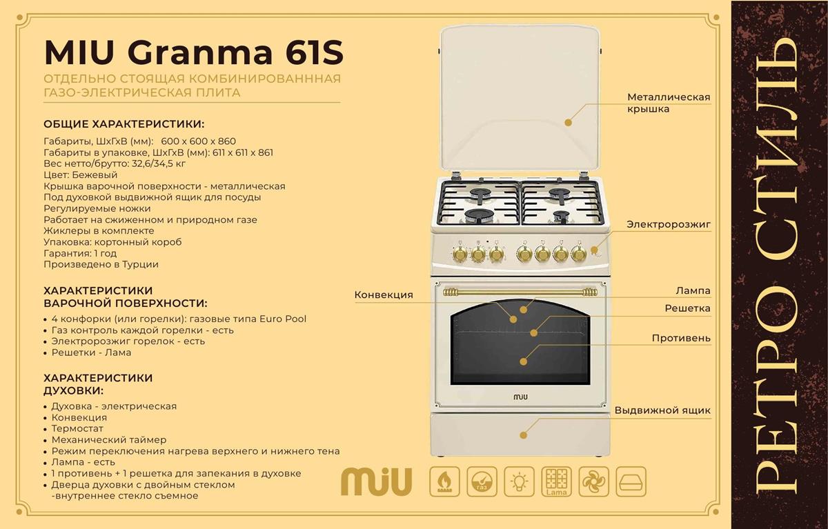 Плита MIU Granma 61S,бежевый - Интернет-магазин Позитив: бытовая техника, электроника, товары для дома и др.