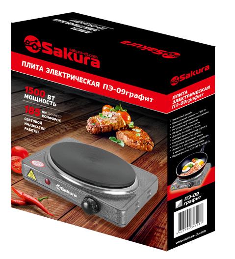 Плита настольная Sakura ПЭ-09 1500Вт 185мм 1конф/диск графит (электрическая, эмалированная сталь, графит)