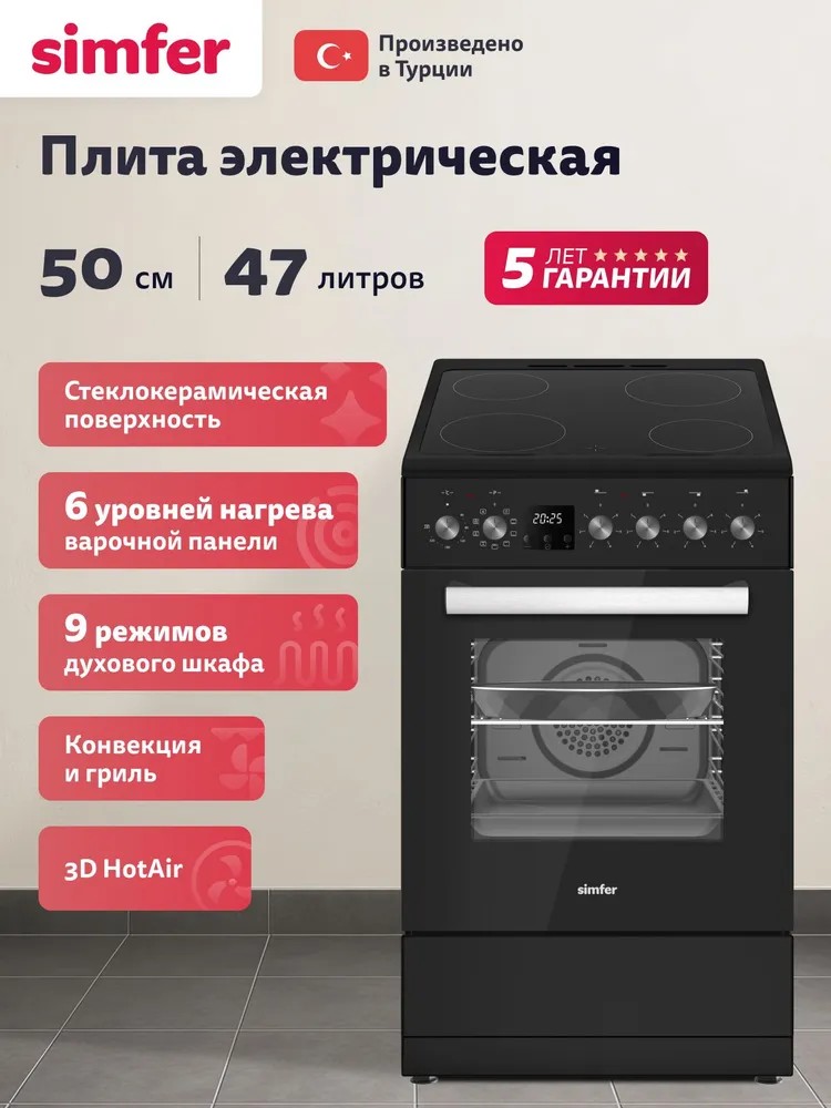 Плита электрическая с духовкой Simfer F56VB09025 - это современное и функциональное решение для вашей кухни.