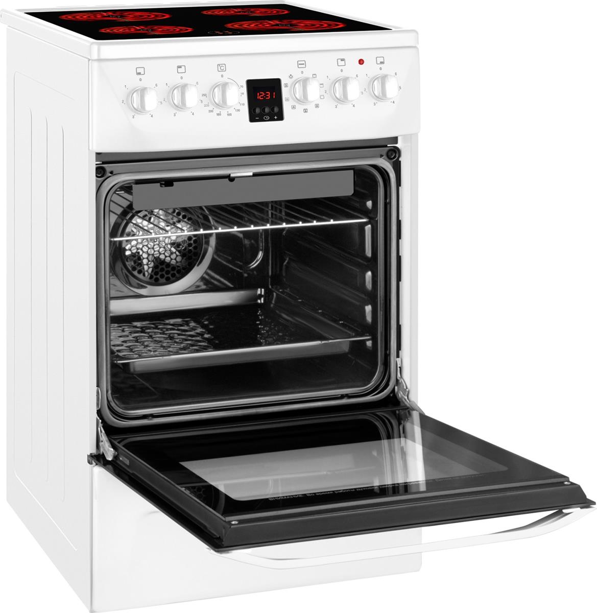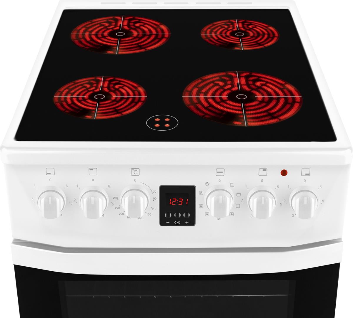 Электрическая отдельностоящая плита Weissgauff шириной всего 50 см, выполненная в белом цвете, оснащенная духовкой с впечатляющим объемом 50 литров, а также стеклокерамической панелью с 4 Hi-Light конфорками - это сочетание великолепной функциональности и практичности, воплощенное в бытовой технике, которая станет сердцем вашей кухни на долгие годы!