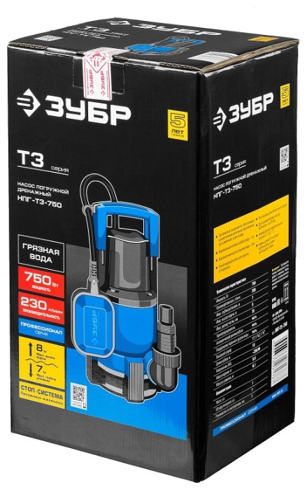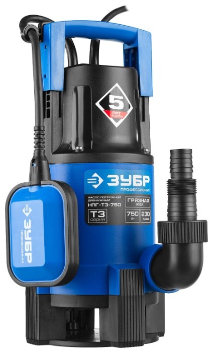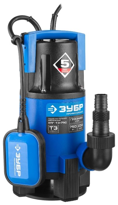 Погружной дренажный ЗУБР НПГ-Т3-750 750 Вт 8 м грязная)