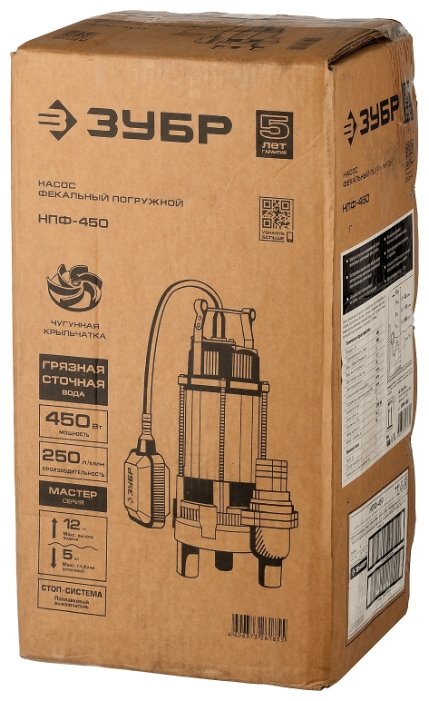 Погружной фекальный ЗУБР НПФ-450 450 Вт 12 м грязная)