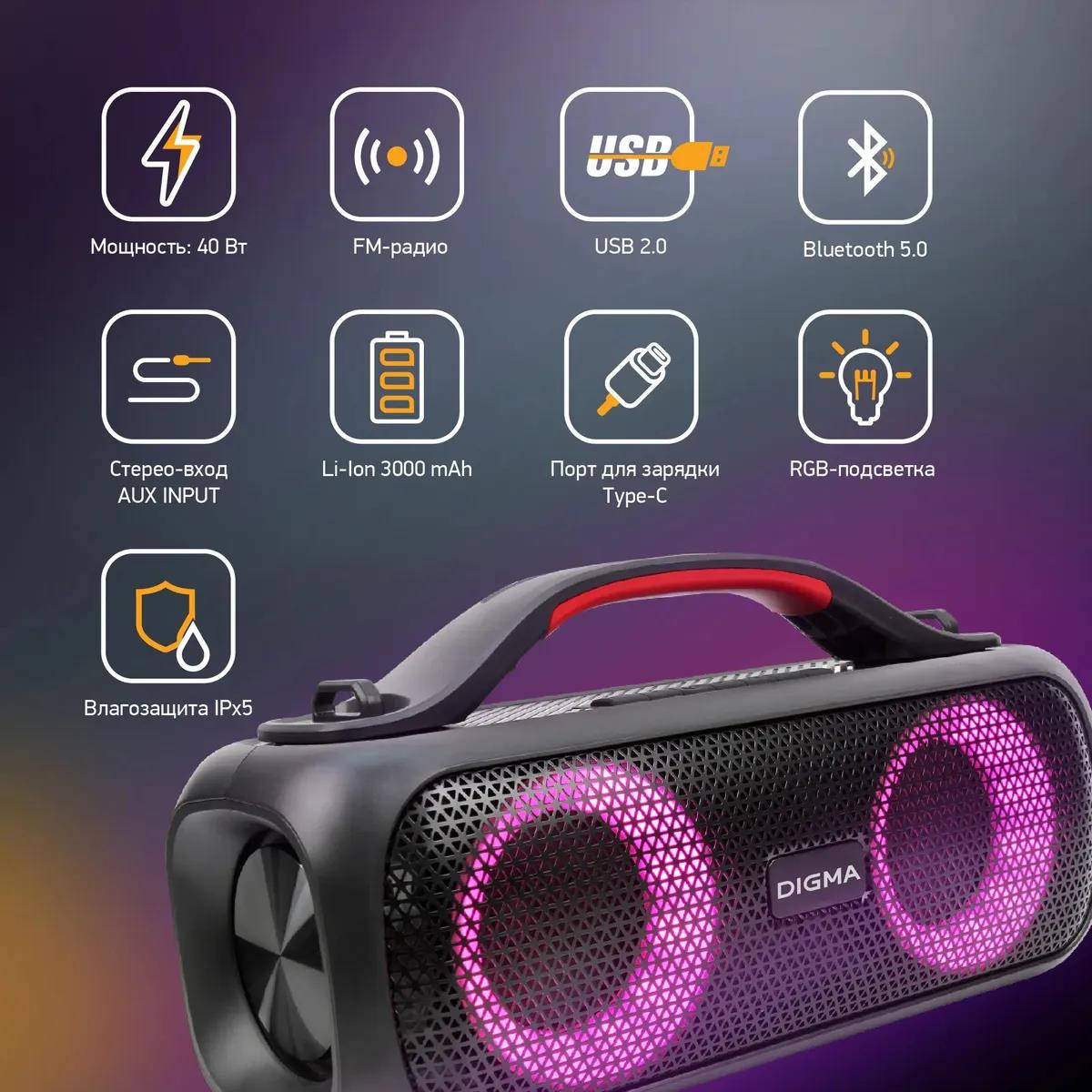 Портативная акустика Digma D-PS1531 40W 2.0 BT 10м 3000mAh (SP1531B) (40 Вт черный) - Интернет-магазин Позитив: бытовая техника, электроника, товары для дома и др.