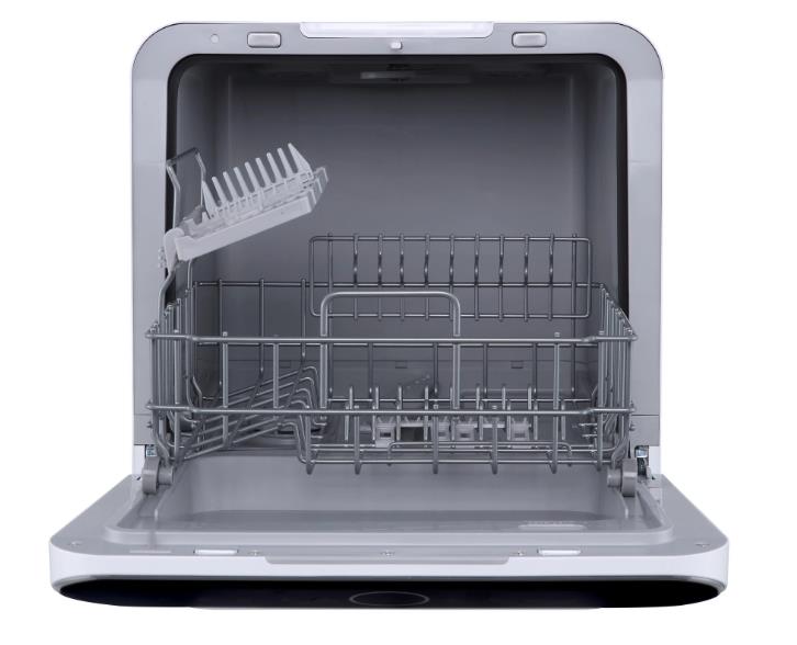 Посудомоечная машина компактная настольная без подключения к водопроводу вместимостью 3 комплекта посуды. Оснащена 6 программами, автооткрыванием дверцы, блокировкой от детей