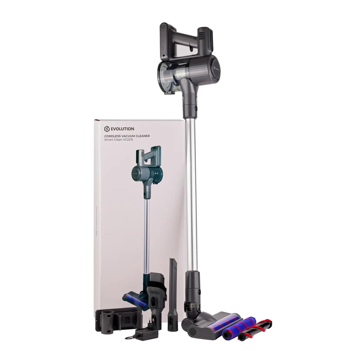 Беспроводной вертикальный пылесос Evolution Smart Clean VC2215 создан для тех, кто ищет мощного и удобного помощника для ежедневной сухой уборки. Три режима работы – стандартный, экономичный и повышенной мощности, а также комплект насадок для уборки разных поверхностей и электрощетка со светодиодной подсветкой. Для хранения пылесоса и всех насадок предусмотрено настенное крепление.