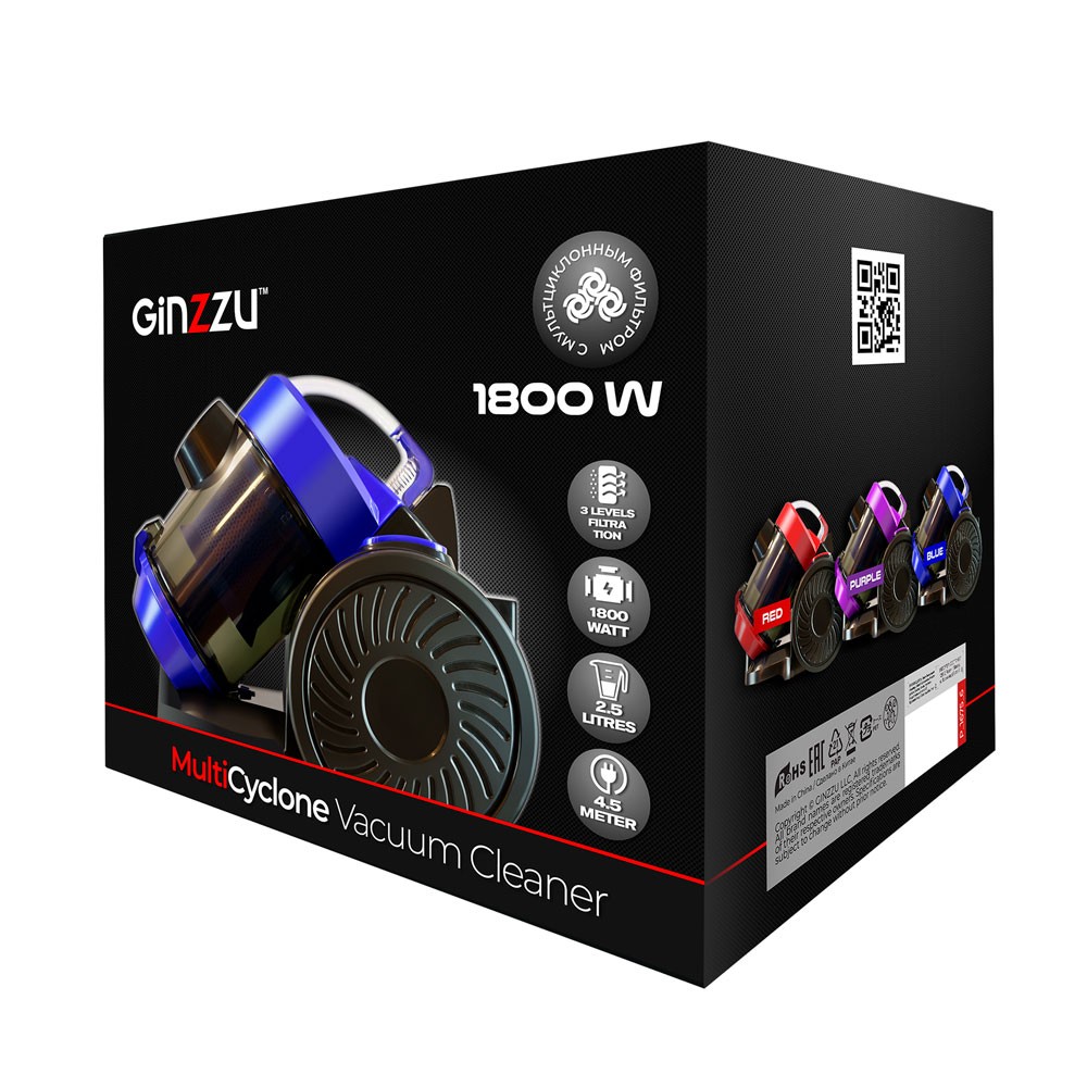 Пылесос Ginzzu VS427 (1800 Вт /контейнер/фиолетовый, черный)
