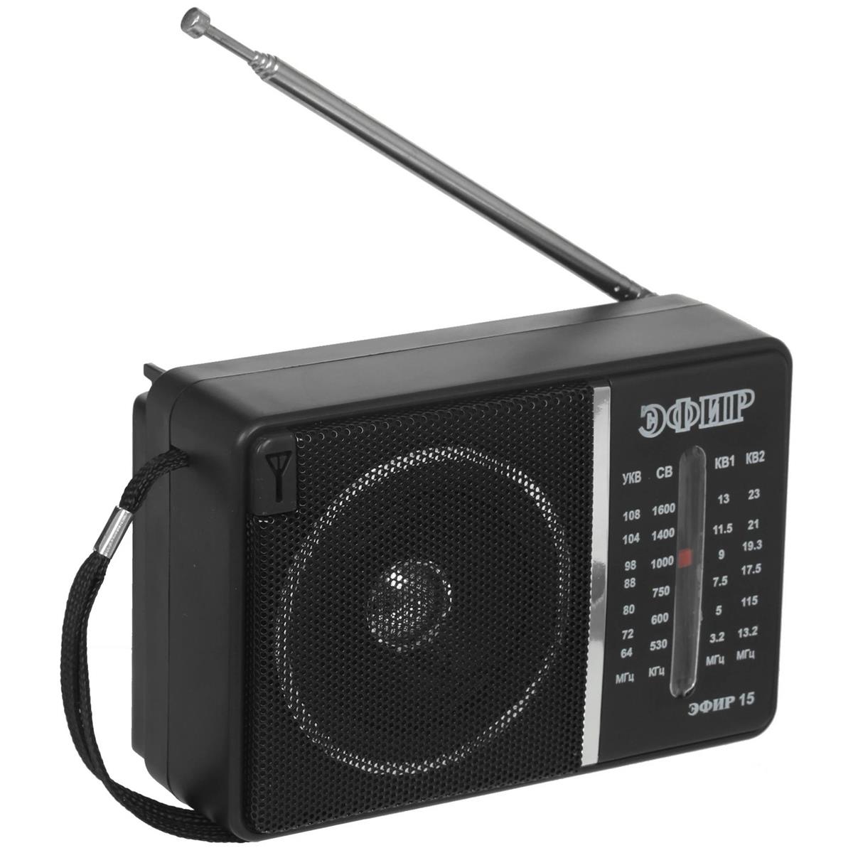 Радиоприемник ЭФИР 15, УКВ 64-108МГц, СВ 530-1600КГц, КВ1,КВ2 бат. 2*R20(D) черный - Интернет-магазин Позитив: бытовая техника, электроника, товары для дома и др.