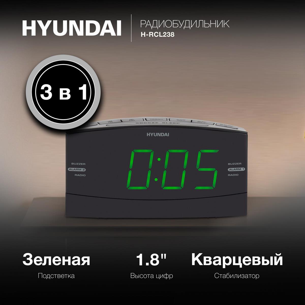 Радиоприемник Hyundai H-RCL238 LCD подсв:зеленая часы:цифровые FM черный - Интернет-магазин Позитив: бытовая техника, электроника, товары для дома и др.