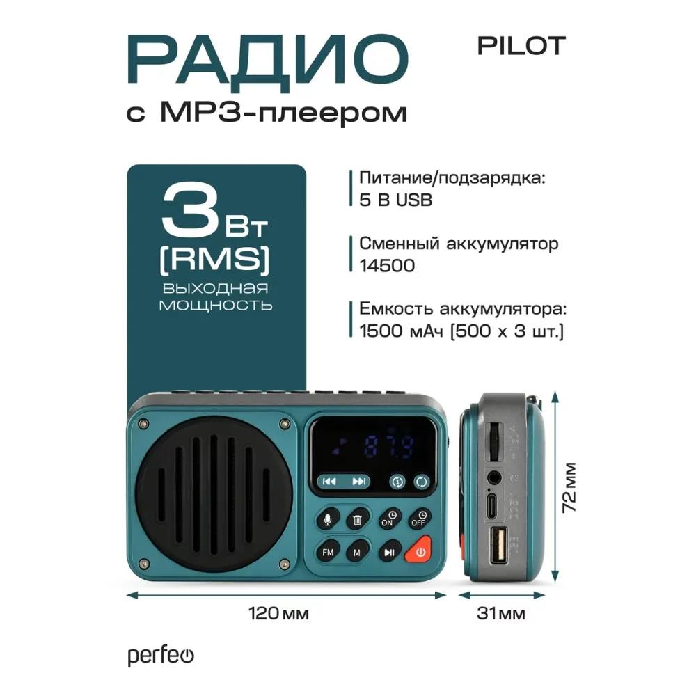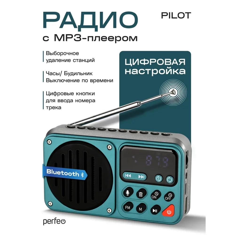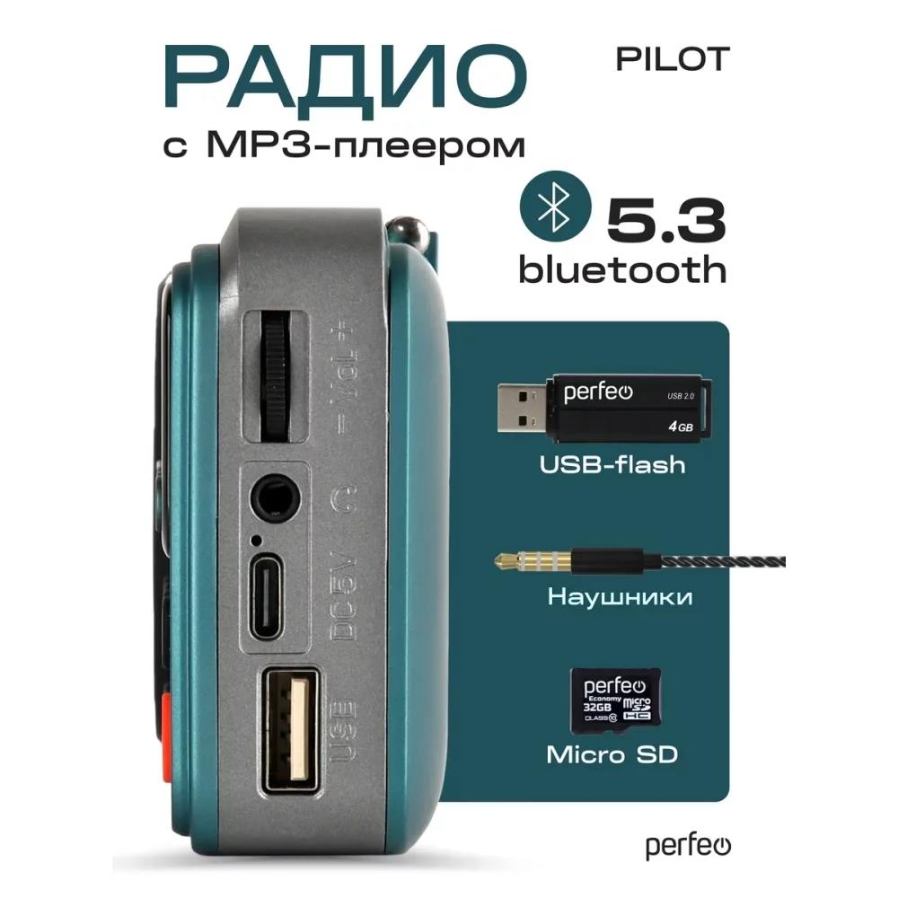 Радиоприемник Perfeo (PF_D0575) PILOT серый, бирюзовый
