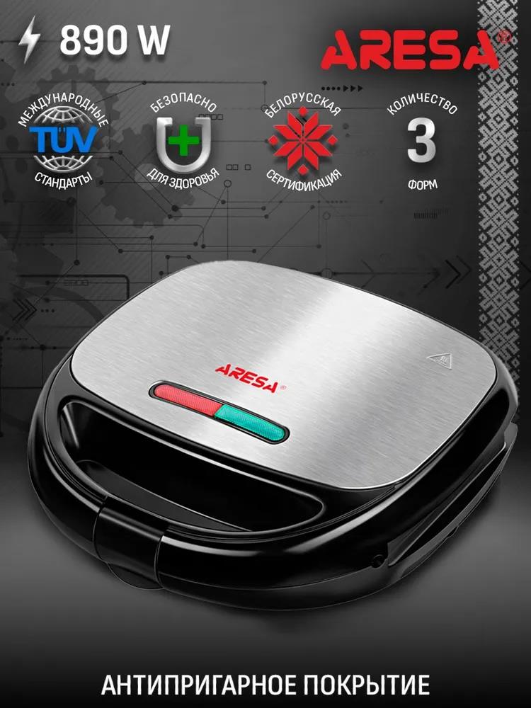 Сэндвичница Aresa AR-1206 (890 Вт //серебристый, черный)