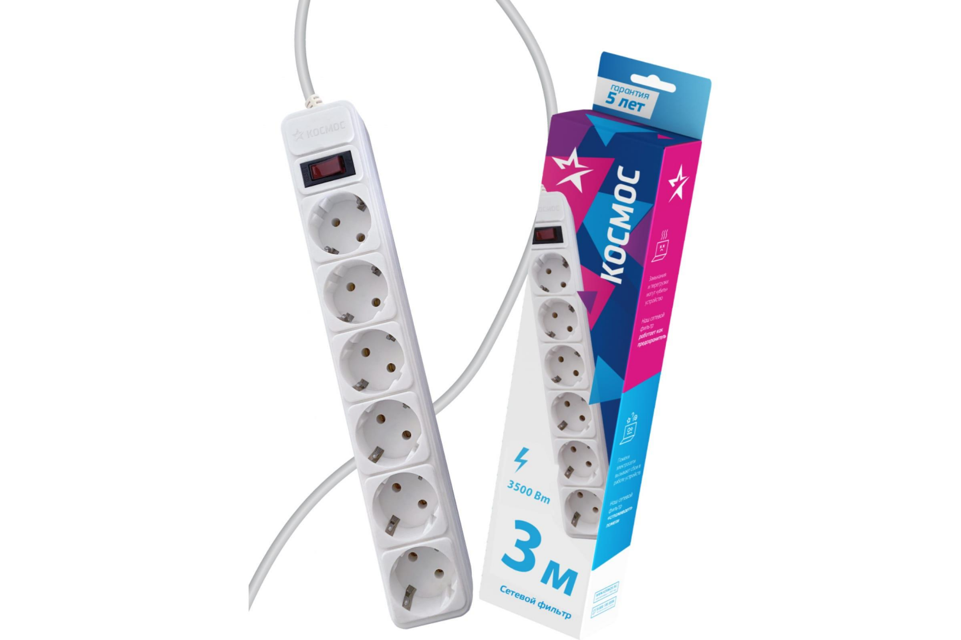 Сетевой фильтр Космос FKsm3m-6g(W)16A 3 м, белый - Интернет-магазин Позитив: бытовая техника, электроника, товары для дома и др.