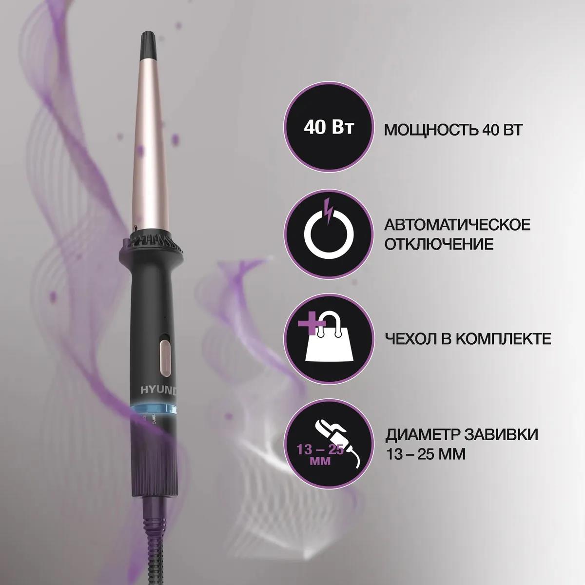 Щипцы для волос Hyundai H-HC1410 40Вт макс.темп.:200С покрытие:керамико-турмалиновое черный (40 Вт /200 °C/Керамико-турмалиновое)