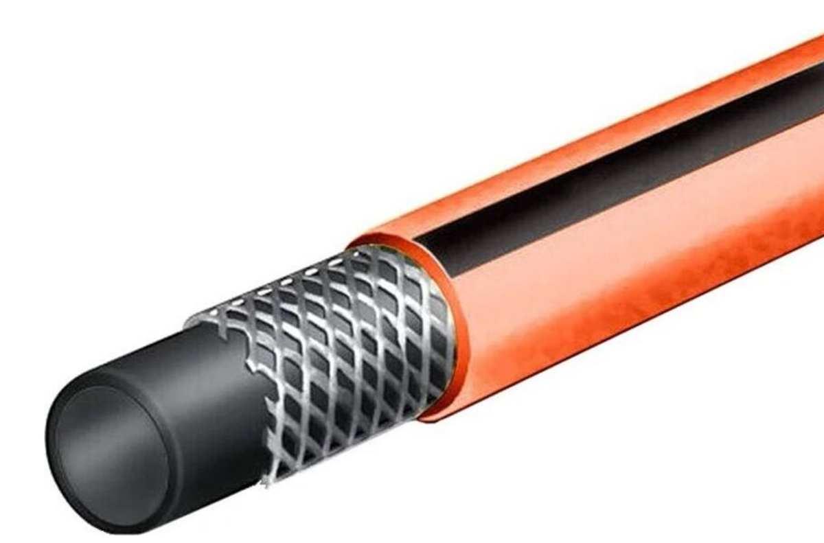 Высококачественный прочный трехслойный шланг ПВХ, усиленный нитью , Цвет: синий с оранжевой полосой и черным внутренним слоем, Состоит из 3-х слоев:, внутренний слой, обеспечивающий экологическую безопасность, усиливающая нить, внешний слой защищающий от УФ-лучей, истирания и перекручивания, Предназначен для использования в быту: для полива огородов, садовых и дачных участков, Устойчив к воздействию солнечных лучей, не выцветает, не подвержен гниению, Экологически чистый продукт, не содержит кадмий, барий, свинец. Диаметр: 3/4". Длинна: 25 м