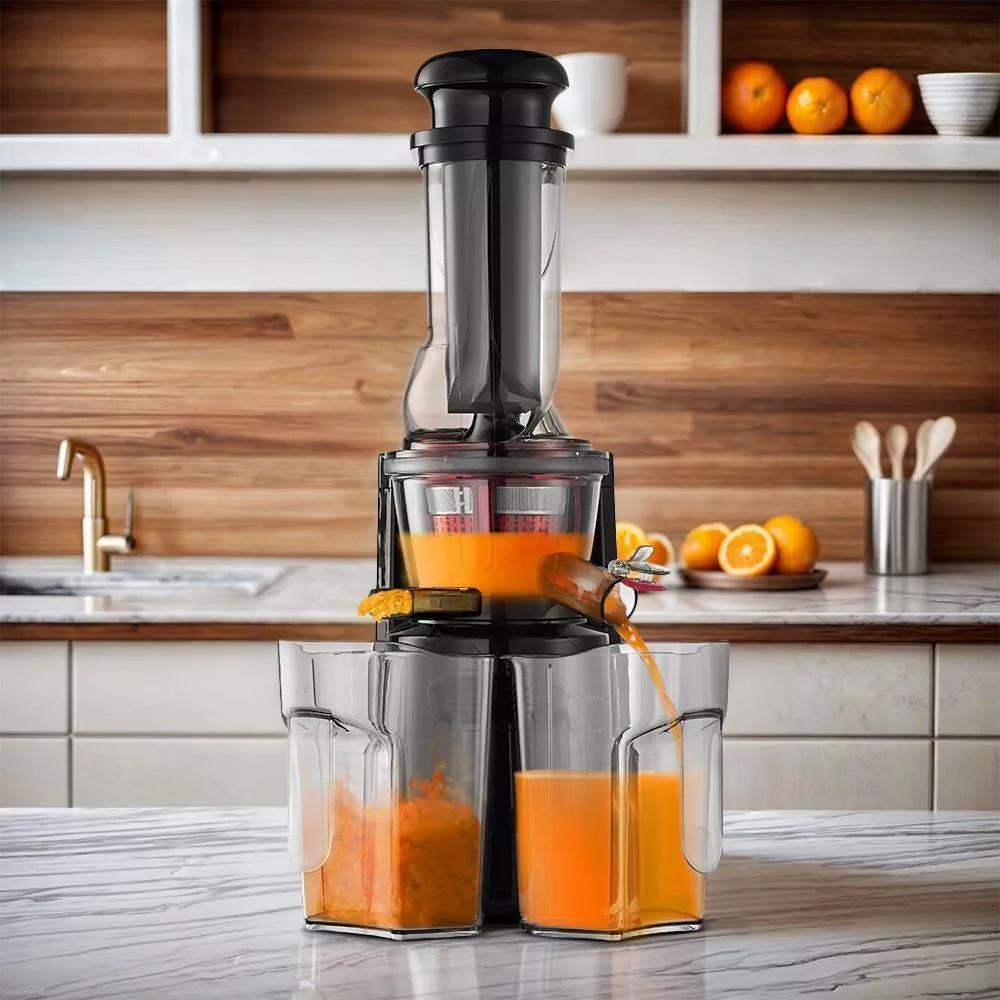 Шнековая соковыжималка КТ-1162 позволяет отжимать максимально возможное количество сока из фруктов, большинства овощей и зелени с сохранением всех их полезных компонентов: витаминов, аминокислот и минералов. Быстро собирается и легко моется после работы.