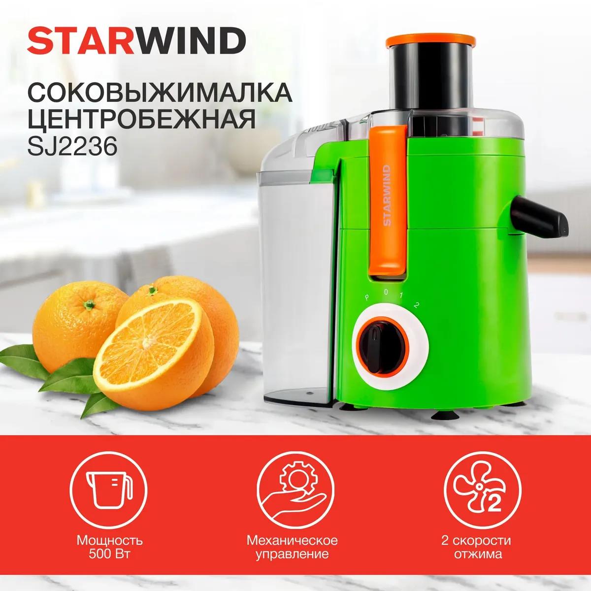 Соковыжималка STARWIND SJ2236 500Вт рез.сок.:400мл. (центробежная/500 Вт /зеленый, белый)