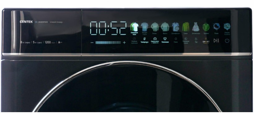 Представляем новинку CENTEK Inverter DIRECT DRIVE MOTOR CT-1967 в корпусе серого цвета. Основное преимущество данной модели в сочетании современных технологий и стиля, отсутствии лишних деталей. Машина оснащена цветным цифровым дисплеем и сенсорным управлением, что позволяет быстро определиться с выбором необходимой программы. Инверторный двигатель обеспечивает бесшумную работу, высокую энергоэффективность А+++. Увеличенный объем камеры который рассчитан на 8 кг стирки и 5 кг сушки, диаметр дверцы 520 мм, и функция подсветки барабана – для более комфортной загрузки и разгрузки белья. Антибактериальная манжета люка предотвращает появление плесени и неприятных запахов. Помимо основных функций, машина оснащена функцией SMART – стирка в одно касание. Инверторная стиральная машина с прямым приводом CENTEK CT-1967 – новый взгляд на привычный уход за вещами.