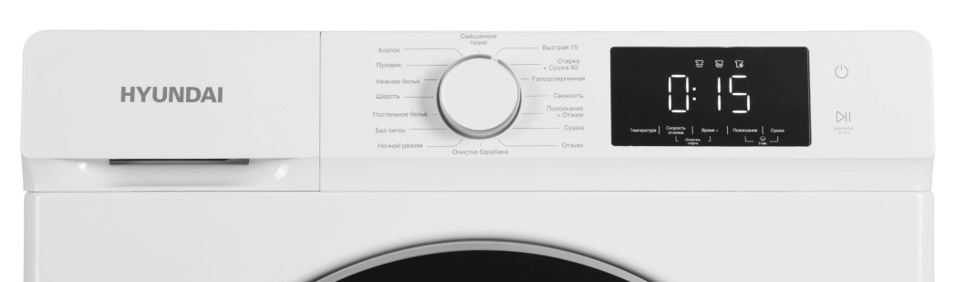 Стирально-сушильная машина HYUNDAI WFD9212 с электронным управлением и русской панелью. Фронтальная загрузка до 12 кг белья, сушка до 8 кг.