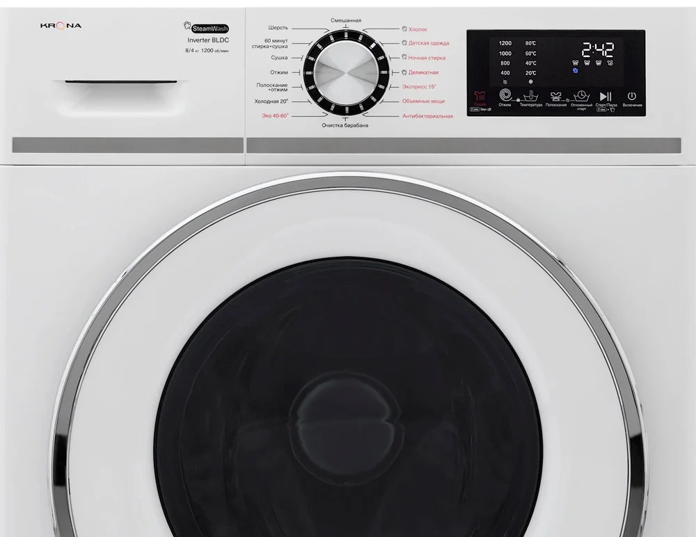 Стиральная машина Krona ITTER OPTI WHITE 1200 8/4K WDM, белый (фронтальная, 8 кг, 1400 об/мин )