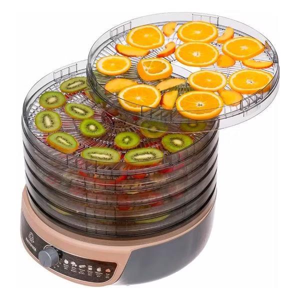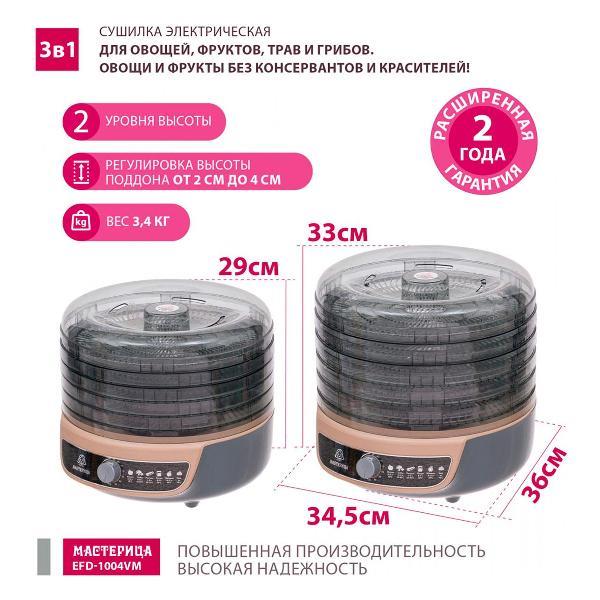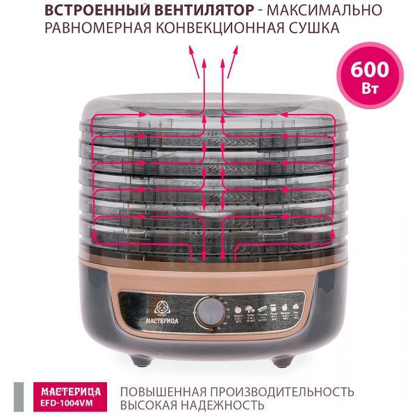 Сушилка для овощей Мастерица EFD-1004VM 5 тонир.поддонов + 2 поддона д/пастилы в подарок D33 (поддонов 5 шт, 600 Вт , серый, бежевый)