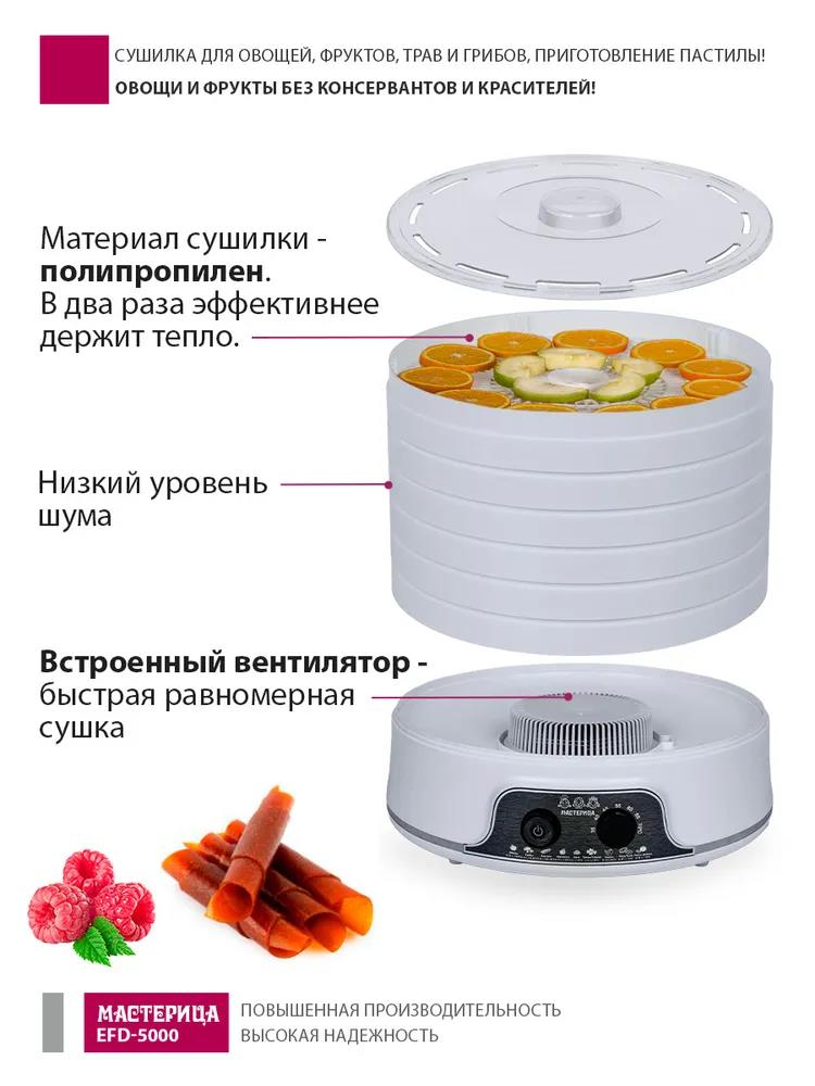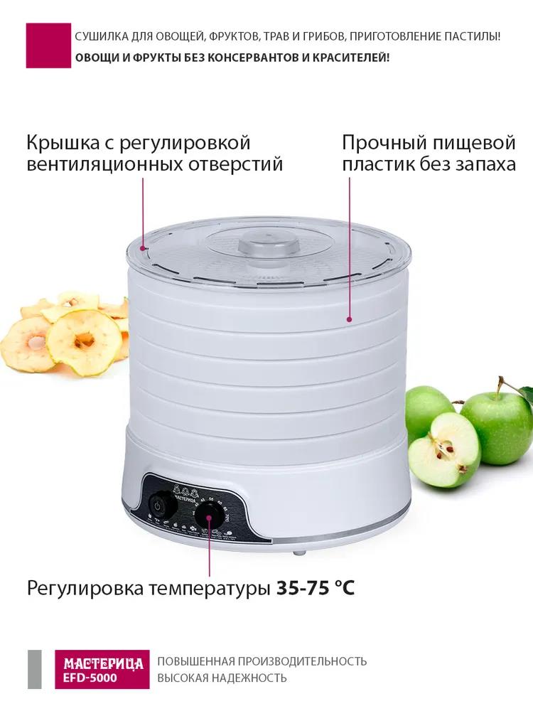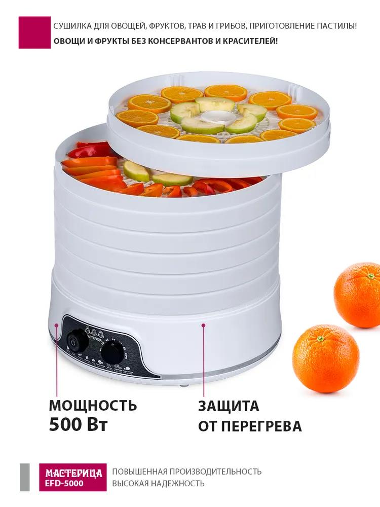 Сушилка для овощей Мастерица EFD-5000, 6 белых поддонов + 3 поддона д/пастилы 500Вт, увеличенный D поддона 36 см (поддонов 6 шт, 500 Вт , белый) - Интернет-магазин Позитив: бытовая техника, электроника, товары для дома и др.