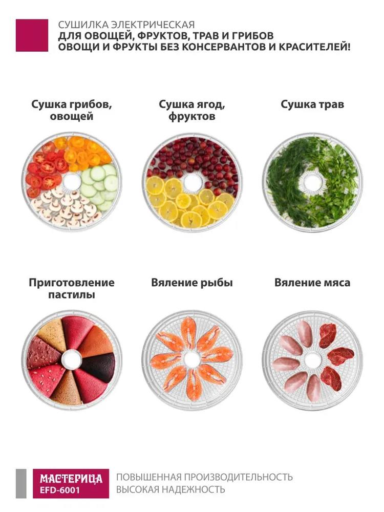 Сушилка для овощей Мастерица EFD-6001, 5 белых поддонов + 2 поддона д/пастилы 300Вт, D 31.6 см (поддонов 5 шт, 300 Вт , белый) - Интернет-магазин Позитив: бытовая техника, электроника, товары для дома и др.