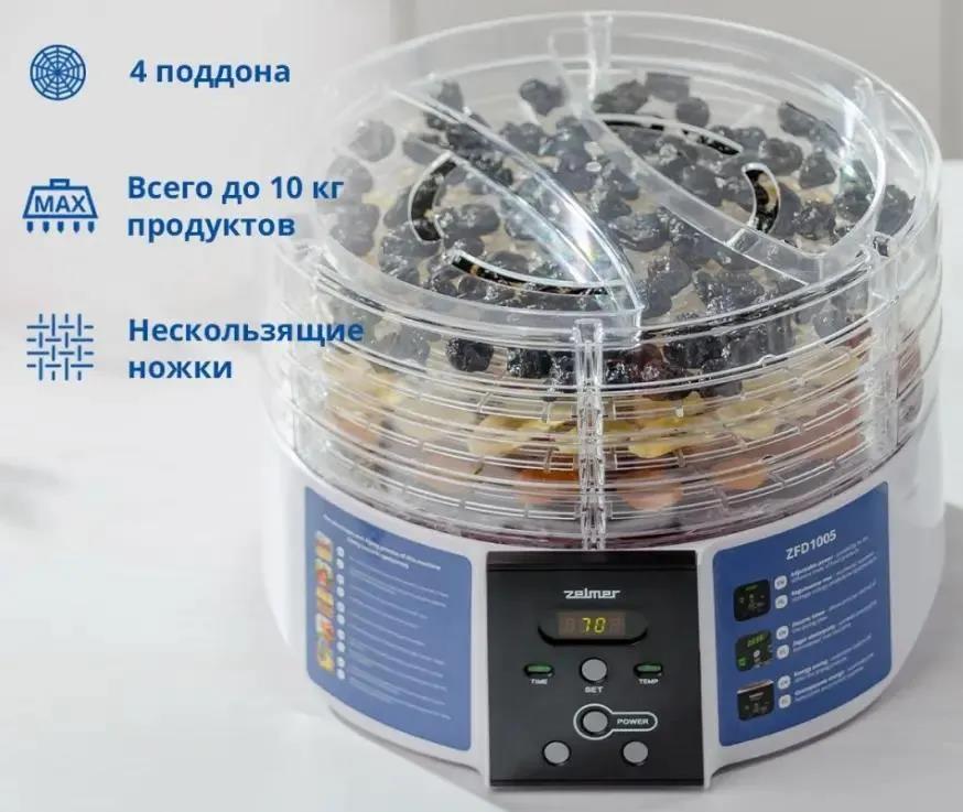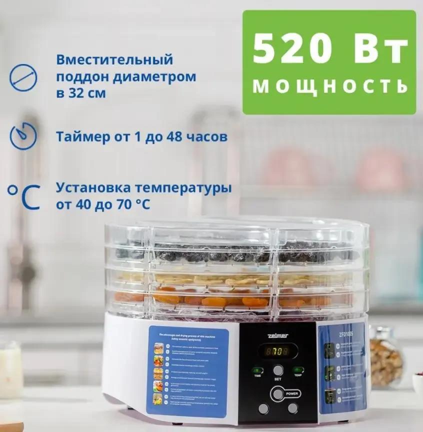Сушилка для овощей Zelmer ZFD1005 (поддонов 4 шт, 520 Вт , белый)