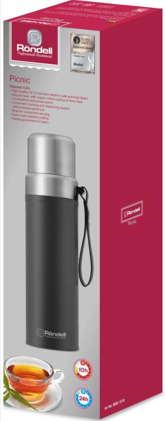 Термос Rondell Picnic RDS-1819 для напитков 0.8л. серый карт. коробка 0,8 л - Интернет-магазин Позитив: бытовая техника, электроника, товары для дома и др.