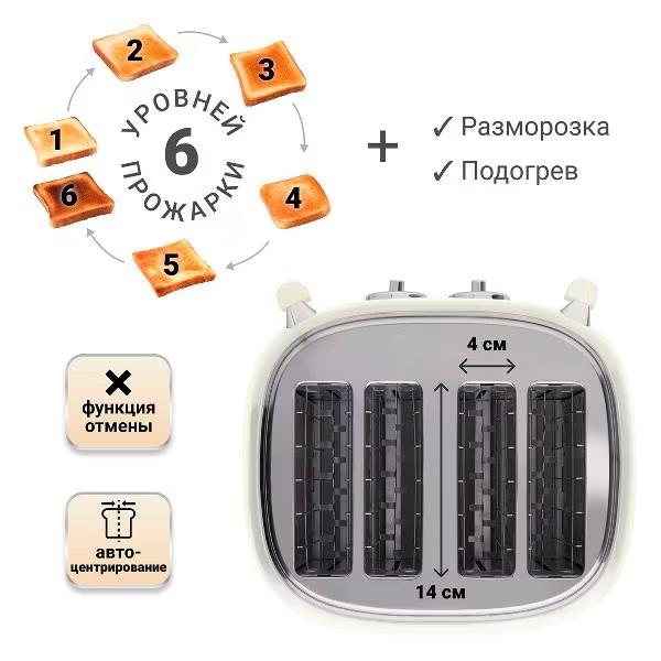 Тостер Tesler TT-445 BEIGE (1500 Вт  бежевый) - Интернет-магазин Позитив: бытовая техника, электроника, товары для дома и др.
