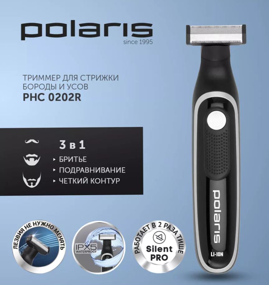 Триммер бороды и усов Polaris PHC 0202R, серебристый, черный - Интернет-магазин Позитив: бытовая техника, электроника, товары для дома и др.