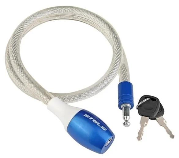 Трос-замок STELS 84353 сделан из стали, он не позволит преступникам завладеть Вашим любимым велосипедом, если Вам пришлось оставить его без присмотра., длина 800 мм, диаметр 12 мм, замок с двумя ключами в комплекте, цвет сине-стальной.