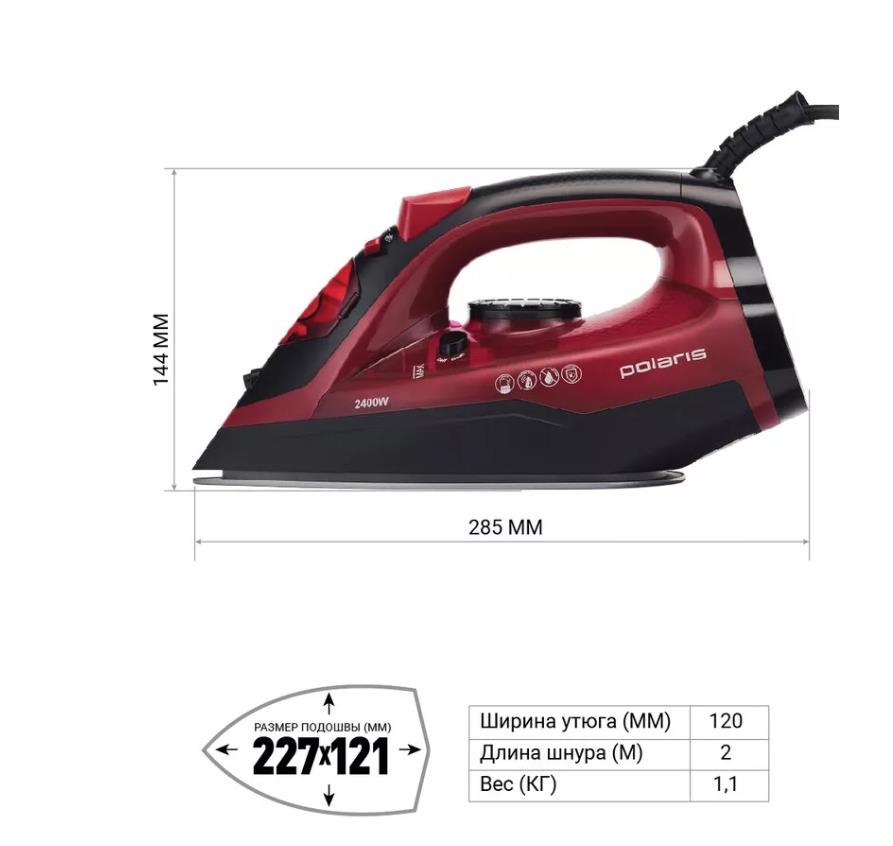 Утюг Polaris PIR-2478К (2400 Вт/черный, алый) - Интернет-магазин Позитив: бытовая техника, электроника, товары для дома и др.