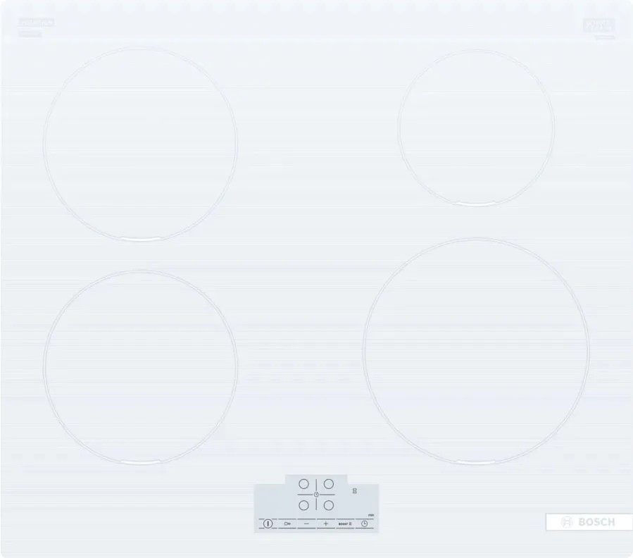 Индукционная варочная панель Bosch PUE612BB1E белая поверхность из прочной стеклокерамики сочетается с минималистичным прямым краем, формируя чистую визуальную линию и позволяя встраивать прибор вровень со столешницей для аккуратного, почти парящего образа рабочей зоны.