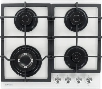 Hyundai HHG 6436 WG – это варочная поверхность из чугуна и закалённого стекла с независимой установкой и электроподжигом. Суммарно устройство выдаёт 7800 Вт. Конструкция данной модели позволяет установить её на уже готовую кухню, где не хватает только плиты. Прибор имеет четыре конфорки с различными характеристиками: левая ближняя – двухконтурная с мощностью 3500 Вт, левая дальняя – одноконтурная с мощностью 1700 Вт, правая ближняя конфорка – одноконтурная с мощностью 900 Вт, правая дальняя также одноконтурная и имеет мощность 1700 Вт. Каждая из них оборудована автоматическим электрическим поджигом, активировать который можно через ручку-регулятор – их предусмотрено четыре, под каждую конфорку. Такой вариант воспламенения газа обеспечивает высокую безопасность эксплуатации. Благодаря продуманным характеристикам готовить на плите можно любое блюдо, даже самое привередливое к термической обработке.