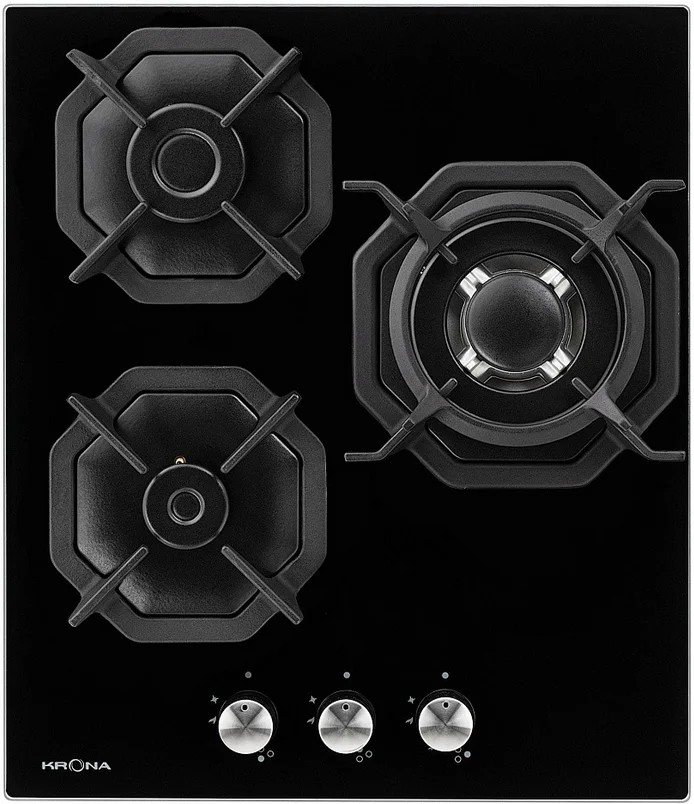 Варочная панель Krona ALBERO 45 BL — редкая модель, представляющая технологию газ на стекле. Это означает, что в качестве поверхности используется закалённое стекло, которое выглядит привлекательнее, а также меньше нагревается. Сами конфорки отличаются приятным современным дизайном. Держатели сделаны из чугуна. Они устойчивы к воздействию пламени и тяжестям.