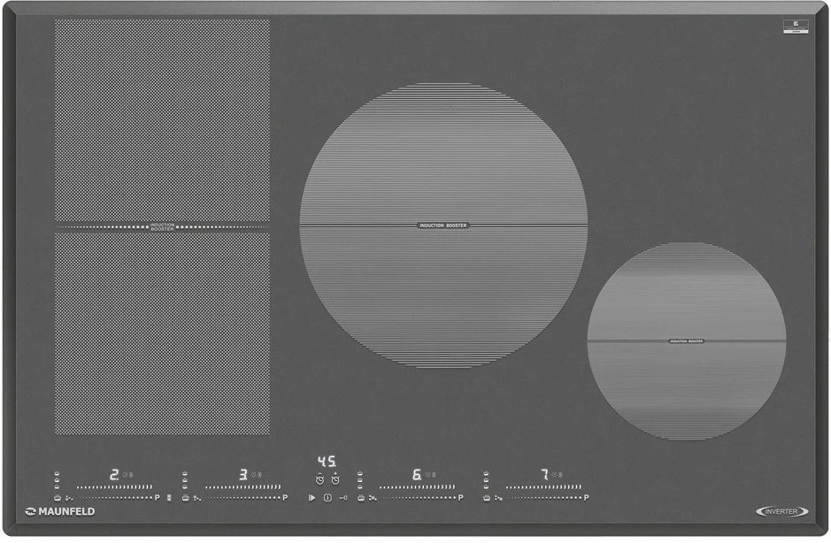 Индукционная варочная панель Maunfeld CVI804SFDGR Inverter - это современное решение для кухни, сочетающее в себе элегантный дизайн и передовые технологии. Поверхность панели изготовлена из стеклокерамики, что обеспечивает ей долгий срок службы и устойчивость к повреждениям. Графитовый цвет придает этой модели особенную изысканность и позволяет ей гармонично вписаться в интерьер любой кухни. К тому же, компактные размеры панели (80 см в ширину и 52 см в глубину) позволяют установить ее даже на небольшой кухне. Управление панелью осуществляется с помощью сенсорных элементов. Благодаря интуитивно понятному интерфейсу, даже новичок сможет легко разобраться в настройках. Панель оснащена сенсорным слайдером, который позволяет выбрать одну из девяти ступеней мощности. Также есть индикация ступени нагрева, что позволяет контролировать процесс приготовления блюд.
