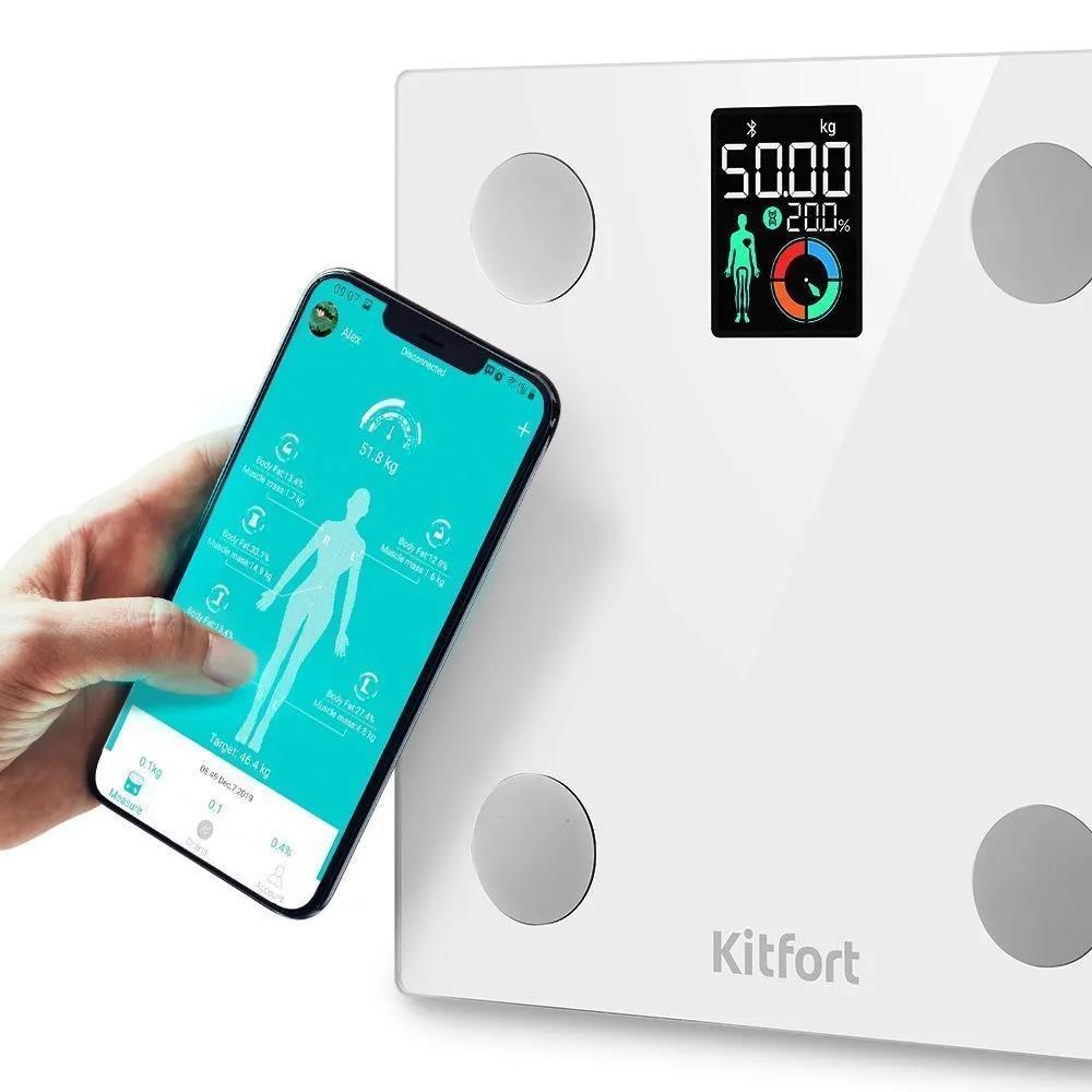 Электронные напольные весы обеспечивают высокую точность измерения, что очень важно людям, следящим за своим весом. Модель КТ-838 представляет поколение «умных» весов, т.к. их можно подключить к приложению и анализировать параметры тела.