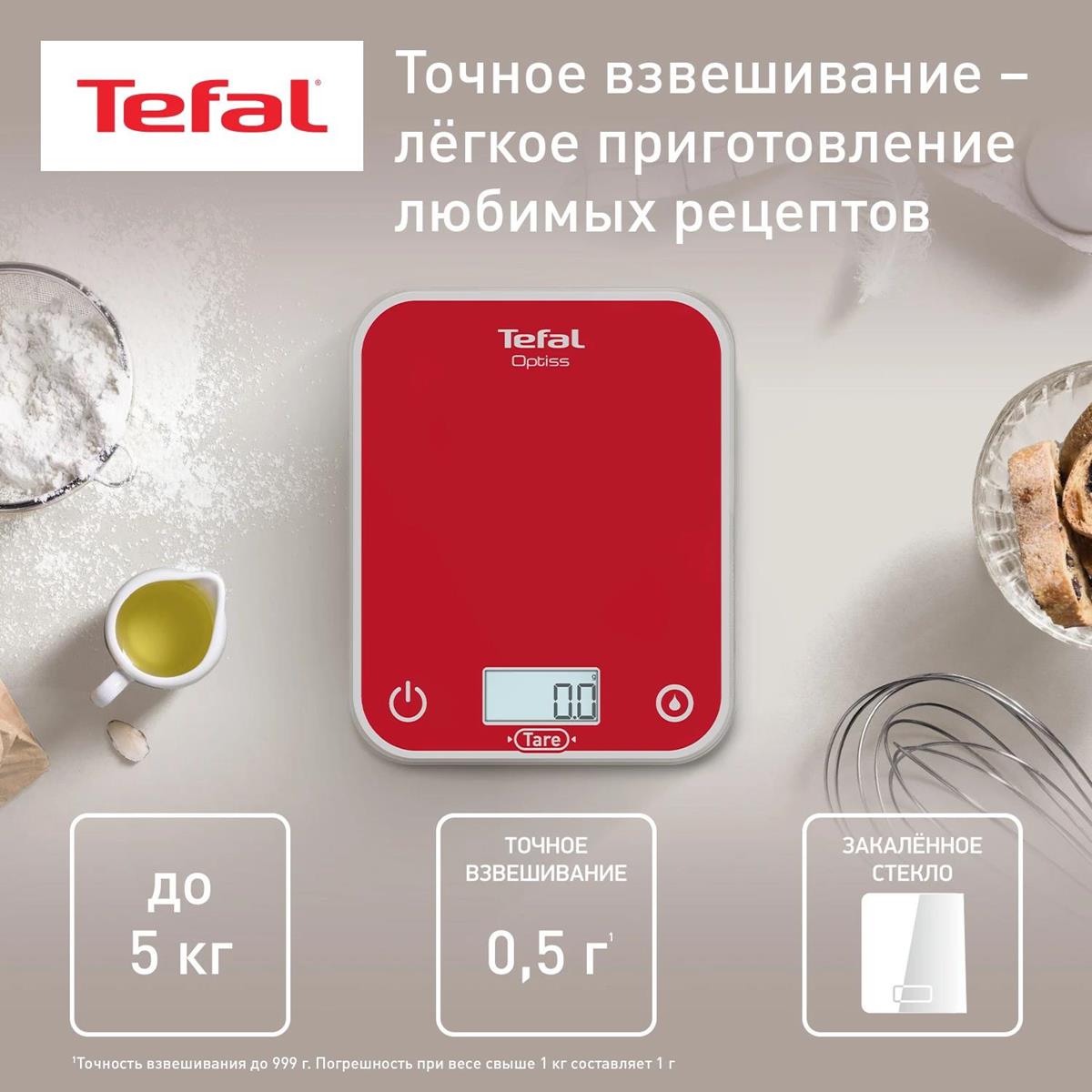 Весы кухонные Tefal Optiss BC50U3V0 (красный) - Интернет-магазин Позитив: бытовая техника, электроника, товары для дома и др.