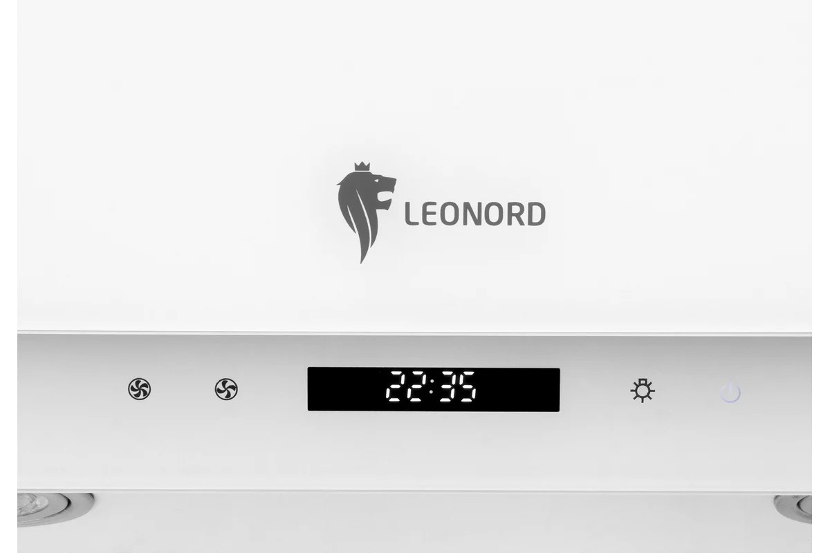 LEONORD LEH-060-60W — это наклонная кухонная вытяжка шириной 60 см, выполненная в белом цвете с отделкой из стекла. Модель сочетает современный дизайн с сенсорным управлением и предназначена для работы в режимах отвода и рециркуляции воздуха.